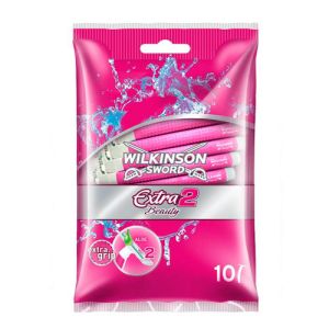 Одноразові верстати Wilkinson Sword Extra-2 Beaty - це перша жіноча бритва, яка має 3 леза, які повністю гнуться і тому адаптуються до контурів вашого тіла, і ви отримуєте дійсно гладке та комфортне гоління. За ціною та якістю, це найкращий верстат і ви не пошкодуєте про гроші, які ви витратили на нього. У пачці міститься 10 шт. бритв, які будуть гарантувати вам бездоганне користування протягом тривалого часу, без порізів та подразнень. Їхня спеціальна будова допомагає підняти волосся перед голінням так, щоб верстат дістав до самого коріння і тому Wilkinson Sword дарувати вам гладку шкіру і комфорт до наступного разу. Гелева смужка над лезами, яка насичена екстрактом алое та вітаміном Е, робить гоління плавним і заспокоює шкіру, запобігаючи почервонінню. Головка, що плаває, надає додатковий комфорт і краще прилягає до шкіри, тому цей процес стає набагато приємнішим, ніж з простими верстатами, які потрібно безперервно змінювати. Ручка бритви вкрита приємною гумовою основою рожевого кольору, яка допомагає краще тримати її в руці, щоб вона не вислизнула несподіваним моментом. Верстат не висмикує волосся, як це буває в інших - ось це їх пріоритет. Ви шукаєте справді хорошу бритву? Те Wilkinson Sword Beauty - це саме те, що вам потрібно. Вони дуже легко поміщаються в кишеню, тому їх можна брати із собою на відпочинок чи подорож, щоб завжди виглядати на всі 100%. Просте чищення, ергономічний дизайн для максимальної зручності керування та зчеплення. Wilkinson Sword обрали вже багато жінок і не пошкодували про свій вибір. Термін використання бритви у кожного різний, оскільки залежить від багатьох складових, таких як міцність та товщина волосків, підготовка шкіри, звички при голінні. Насолоджуйтесь голінням, з Wilkinson – це приємно!