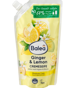 Зберігає вологу: крем-мило Balea з імбиром та лимоном підтримує природний баланс вологи у вашій шкірі за допомогою ніжної формули догляду та зволожуючих інгредієнтів. Фруктовий аромат балує ваші почуття. Склад без мікропластиків та водорозчинних суто синтетичних полімерів.