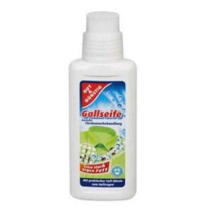 Gut & Günstig Fleckenvorbehandlung Пятновыводитель со щеткой эффективен против многих видов пятен, но особенно против жира, крахмала, крови, фруктов и белковых пятен. Для очистки необходимо намочить пораженный участок водой потереть щеткой.