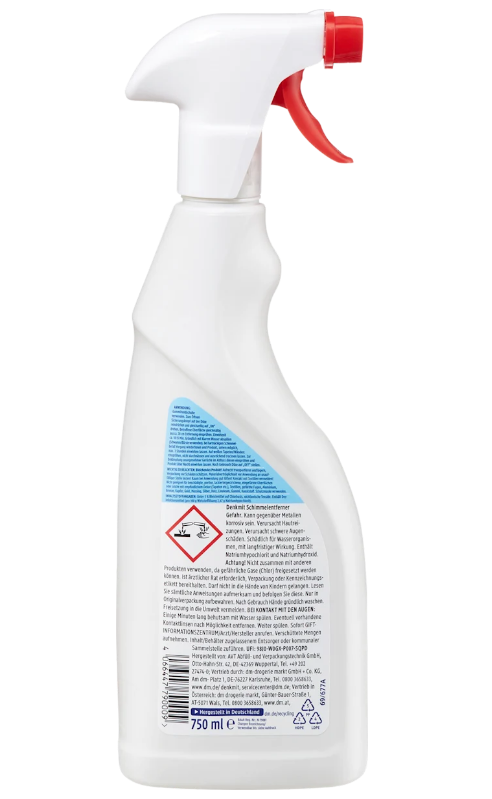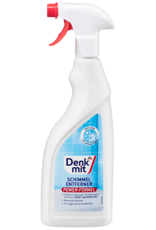 Засіб для видалення цвілі Denkmit із активним хлором забезпечує гігієнічну чистоту у всьому будинку. Ефективне проти плісняви, бактерій та грибка, воно видаляє до 99,9% бактерій і повністю знищує плісняву. Також усуває запахи та зміну кольору, залишаючи поверхні гігієнічно чистими. Ідеально підходить для ретельного збирання та дезінфекції.