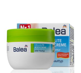 Balea крем для тела антицеллюлитный с активными ингридиентами: гингко-билоба, кофеина и экстракт водорослей, широко известные своим антицеллюлитным действием. Крем подтягивает поверхность кожи, визуально уменьшая проявление целлюлита.