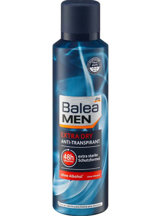 Balea MEN Anti-Perspirant Deodorant Spray захищає чоловічі пахви від поту та запаху тіла на термін до 48 годин. Його формула ніжна на шкірі та забезпечує відчуття сухості та свіжості шкіри.