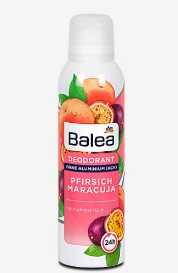 Персик Maracuja Deospray від Balea надає вам святковий настрій. Він захищає від поту та неприємного запаху тіла до 24 годин і піклується про шкіру. Фруктовий запах зачаровує почуття та м'яко лежить на шкірі. Для абсолютно безпечного та акуратного почуття.