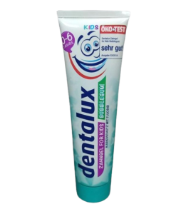 Зубна паста для дітей Dentalux Bubblegum рекомендується від першого зуба приблизно до 6 років.